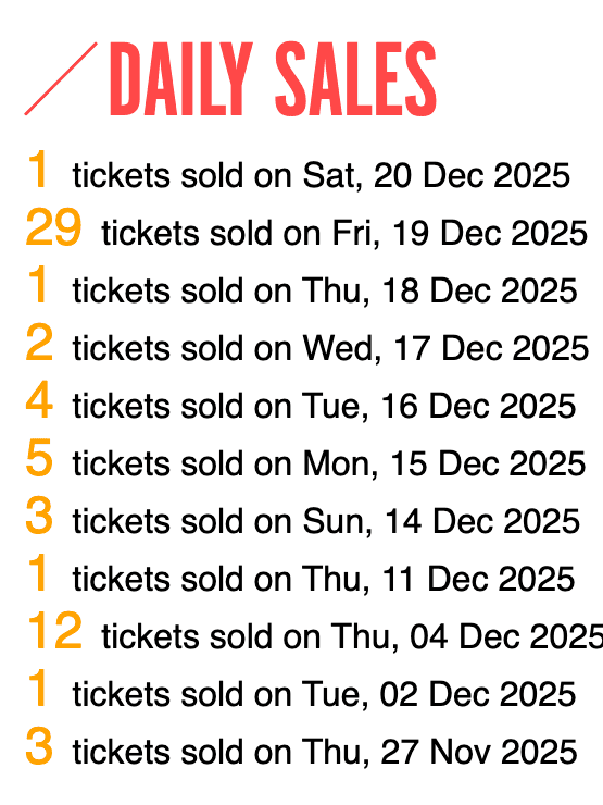 Ticket sales showed a strong last-push pattern, with nearly half of purchases occurring on the day of the event, highlighting the importance of final reminder content and urgency-based messaging.